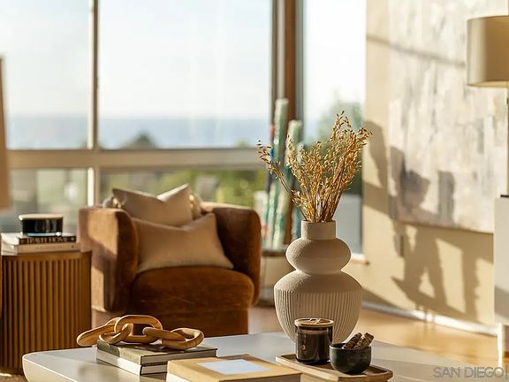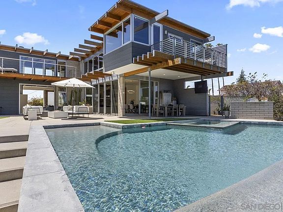 STUNNING! There’s nothing like this with the panoramic views and on SO MUCH land! An Encinitas hilltop estate designed by the internationally acclaimed architect, Steven Lombardi who calls this architectural beauty, “Poetry Meets Pragmatism.” With striking ocean views and phenomenal canyon views, this 4b/4b stunner features the finest combination of wood, concrete, and glass to create a connection between art and nature giving this house and the detached ADU an “inside and out” serene vibe. As you enter the home, you are surrounded by disappearing glass walls… One way leads to the west, boasting of ocean views and breezes, and the other way leads to the east, revealing back country canyon and golf course views, as well as a pool, spa, barbecue, and guesthouse. The main residence boasts bamboo wood from the Seattle Forest Program, concrete flooring, numerous floor-to-ceiling Fleetwood glass walls/windows and doors. The kitchen is equipped with Miele appliances, custom natural stone composite countertops, and Italian cabinetry. Artemide lighting and Velux automatic skylights enhance the indoor-outdoor living experience. The 572sf, 1b/1b guest house/ADU, mirrors the exceptional finishes and a full kitchen. The floor to ceiling windows and private deck feels like you’re standing in a magical treehouse. With sunrise to sunset views, you are 2mi to the ocean, downtown Leucadia dining & shopping, Equinox & it’s new neighboring shops, La Costa Omni Resort and more!