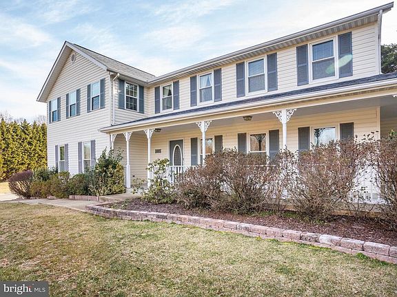 Situated on a level, 1.5 acre, all usable lot in the heart of Huntingtown this colonial offers comfortable family living and a tree-lined back yard creating the perfect retreat for relaxing and entertaining. Step inside and find over 3,100 square feet that includes a kitchen with stainless steel appliances, silestone counter tops and ceramic backsplash, family room with fireplace and stained wood mantel, large formal Dining and Living rooms with crown moulding, chair rail and wains coating and a den that opens to the wrap around front porch. Upstairs you will find large secondary bedrooms, a master suite with attached bath and a possible 5th bedroom with custom cabinet built-ins. Step outside onto your non maintenance deck overlooking the in-ground pool and landscaped rear yard.