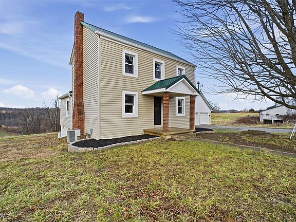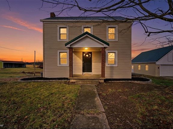 Set on 2.2 acres in the Franklin Local School District, this spacious two-bedroom, one-bath home offers fresh updates and an exceptional outdoor setting. Interior improvements include new flooring, fresh paint, and stainless steel appliances. The highlight of the home is the brand-new back deck, providing beautiful rolling hill views—ideal for sunset evenings, summer dining, or morning coffee. A large detached two-car garage with concrete floors also features a loft above, offering flexibility for storage, workspace, or future possibilities. A rare combination of space, setting, and beauty. MUST SEE!!