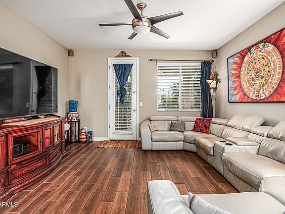 Built in 2017, this exceptional home is nestled within the quiet, gated Riverview community, offering a prime Central Valley location near the 101 & 202. Enjoy unbeatable convenience—just minutes from the Cubs Spring Training Stadium, Pickle Ball next to Bass Pro, Tempe Marketplace, ASU, Phoenix Sky Harbor, and the heart of Scottsdale. This beautiful 3-bedroom home plus bonus room/office features plank tile flooring throughout the main living areas and plush carpet in the bedrooms. The open-concept chef's kitchen is perfect for entertaining, showcasing granite countertops, stainless steel appliances, and a large island with sink and breakfast bar seating. The primary suite provides a serene retreat with an en-suite bath, walk-in shower, dual sinks and a spacious walk-in closet. Step outside to a private backyard with a covered patio, paver area, and artificial turf - just the right amount of space with minimal upkeep. Enjoy added privacy with no neighbors behind you, backing to a peaceful greenbelt. The Riverview community offers walking paths and a private children's play area. Baseball fan? You'll love being near both Hohokam Stadium and Sloan Park, home of the Chicago Cubs.