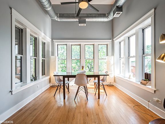 Spacious 3BD/2BA in Prime Rogers Park Location. This TOP floor unit is on the 3rd floor of the building and offers 14-foot ceilings and nearly 2,000 square feet of living space. This rehabbed, intimate vintage building has a soft loft feel in the main area, a gas fireplace and hardwood floors. The open-concept layout features a breakfast peninsula, space for an eat-in kitchen, and a separate dining area, ideal for entertaining or daily comfort. The primary bath includes a whirlpool soaking tub, separate shower, and dual pedestal sinks. Additional amenities include central AC, in-unit laundry, secured exterior parking, basement storage, and exclusive roof rights with shared deck access for only the top 2 units. Located just minutes from the lakefront, Morse CTA, Metra, and Loyola University. Enjoy nearby cafes, markets, parks, and an easy commute downtown or to Evanston via bike or car. A perfect blend of classic charm, modern comfort, and unbeatable access to the best of Rogers Park living.