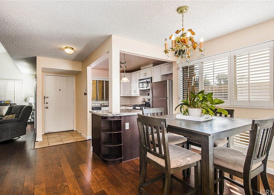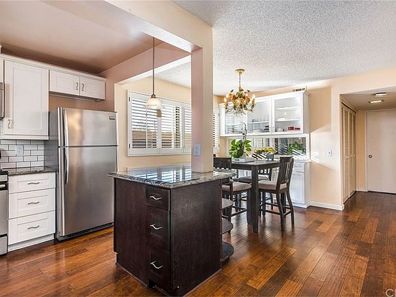 Great opportunity to buy a 2 BR condo in heart of La Habra. Welcome to the Hidden Lakes Association which is small private community offering a world of privacy and peaceful living. Homes rarely come up for sale in this highly desirable community. This 2br townhome is a single level unit located above the garage area with no neighbors above or below. It's also a corner / end unit with it own private entrance. There is a 2-car detached garage and your own private laundry closet. This property has been upgraded with a kitchen island, granite counters, stainless steel appliances, hardwood flooring and plantation shutters - just to mention a few items. The living room is bright and airy with a central fireplace and vaulted ceilings. At 1142 sqft of living space this home feels very spacious and accommodating. The master bedroom is extra-large with retreat area and a vanity sink. Come find out what a great value this townhome is. HOA fees include water, cable, and insurance.