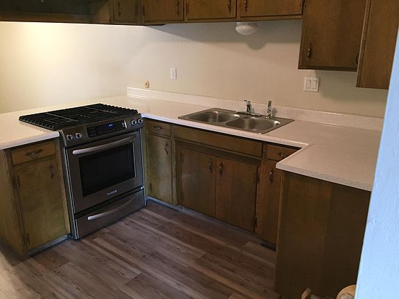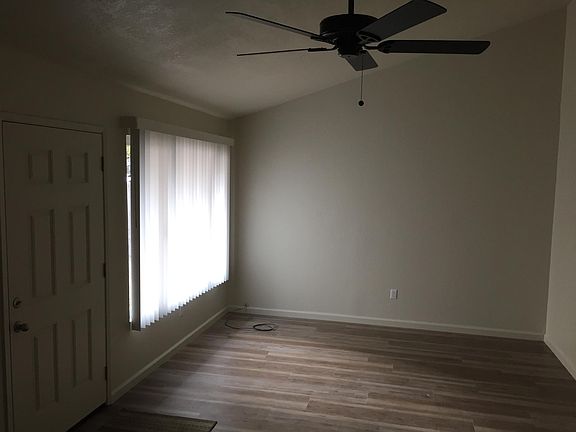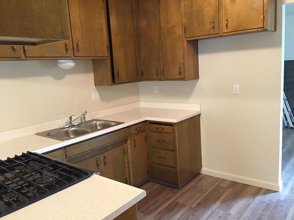 Fully remodeled two bedroom one bath. Large family room with vaulted ceilings. High end luxury vinyl in the entire unit. Large designated eating space connected to kitchen. New dual pane windows and slider. Central heat and air. Laundry hook ups in garage. Private one car garage with automatic opener. Property offers unique seclusion due to large front wall. Large backyard with covered patio. $1150.00 per month, no section 8. Credit score must be over 600. 600 credit score