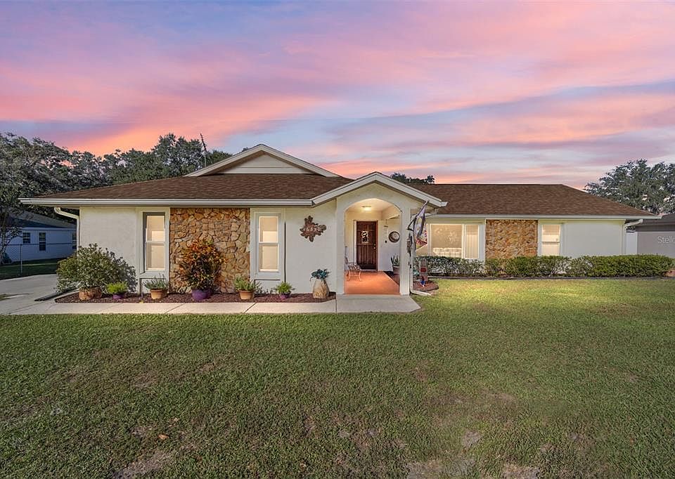 One or more photo(s) has been virtually staged. Back on the market due to Buyer Default. Spacious ranch home conveniently located between The Villages, FL and Ocala, FL. Welcoming home with Living Room - Dining Room - Kitchen - Spacious Family Room or 4th bedroom (there are closets) plus 3 more bedrooms - 2.25 bath. Large fenced-in backyard with 2 Exterior Sheds - 16 x12 and 24 x12. Room for a pool and much more outdoor living. Large screened-in covered porch for your enjoyment. Home has well and septic. House is wired for generator. Home has a Cross Fire Heat & Alarm System. No HOA - NO Bond! Near shopping and restaurants. Central location between The Villages and Ocala. Roof - 2021, HVAC - 2014.