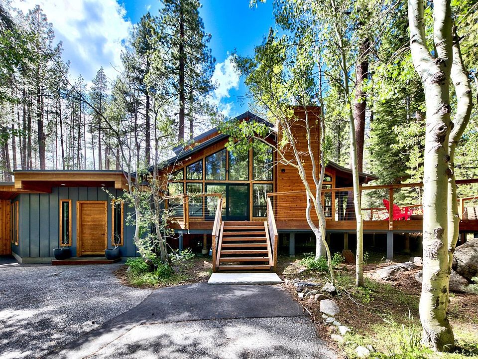 Private Donner Lake HOA membership available.....Welcome to 16352 Old Highway Drive, an exquisite Mountain Modern retreat located in the breathtaking Donner Lake area of Truckee, CA. This stunning 4 bedroom, 4.5 bathroom home offers an unparalleled living experience in the heart of nature. Here are some of the features that make this property truly exceptional: As you step inside, you'll be captivated by the striking floating staircase, an architectural masterpiece that adds a touch of elegance to the home's design. The warm embrace of natural light pouring in through the expansive windows seamlessly blends the outdoors with the interior, creating a stunningly beautiful living space. The open-concept living space is thoughtfully designed for entertaining, providing a great flow between the kitchen, dining area, and living room. The gourmet kitchen features high-end appliances, sleek countertops, and ample storage. Whether hosting intimate gatherings or grand celebrations, this home offers the perfect ambiance for any occasion. Not to mention, the property features air conditioning for summer time comfort. Indulge in the luxury of a wraparound deck that surrounds the property, offering views of the surrounding mountains and lush greenery. The generous outdoor space allows you to create unforgettable memories while enjoying al fresco dining, lounging in the sun, or simply immersing yourself in the tranquility of the natural surroundings. The oversized windows not only flood the home with abundant natural light but also frame the picturesque vistas, creating a seamless connection to the breathtaking landscape outside. At the end of the day, retreat to the well-appointed bedrooms, each designed with comfort and relaxation in mind. Practical layout with bedroom on main level. The spacious bonus room completes the main entry level, complete with a full bathroom and wet bar. The stunning staircase leads to the additional en-suite bedrooms and 4th bedroom. Located in the coveted Donner Lake area, this mountain modern sanctuary offers a remarkable combination of style, functionality, and natural beauty. Whether you seek a year-round residence or a weekend getaway, this home provides an idyllic retreat where modern living meets the splendor of the mountains. Property qualifies owners to join the private Donner Lake HOA beach providing buoys and kayak/SUP storage at the lake. This property is truly exceptional, offering unparalleled elegance and style in a breathtaking natural setting. Don't miss the opportunity to own this exceptional property. Contact us today to schedule your private tour and experience the magic of this Mountain Modern gem at Donner Lake.