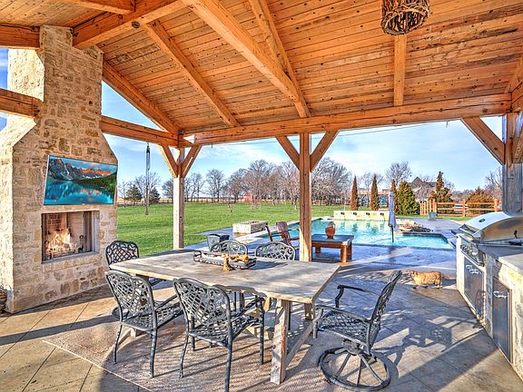 Exquisite, immaculate, and flawlessly designed, this stunning farmhouse-inspired residence boasts three spacious bedrooms, 2 1/2 baths, an oversized two-car garage, and a separate home office. Nestled on almost 9 acres of pristine land, this property epitomizes serenity and privacy. Step outside into your very own oasis, complete with a custom inground swimming pool, pavilion, and an enviable outdoor kitchen that will undoubtedly impress your guests. The seamless integration of the indoor and outdoor spaces is highlighted by a captivating stone fireplace, exquisite woodwork, and vaulted beam ceilings, creating an atmosphere of timeless elegance. The master suite is a true haven, featuring a luxurious glam bath and a boutique-sized master closet that caters to both functionality and style. Every inch of this home has been meticulously designed and crafted with the utmost attention to detail, resulting in a truly breathtaking living experience.