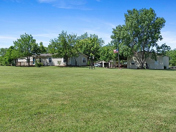 Welcome to your dream country retreat! Nestled on 9.9 picturesque acres, this spacious 2,100 sq ft manufactured home is set on a permanent foundation and offers the perfect blend of comfort, functionality, and rural charm. Boasting 5 bedrooms and 3 bathrooms, the home features an open floor plan, a cozy wood-burning fireplace, and a modern kitchen complete with stainless steel appliances - ideal for family living and entertaining. The master bedroom is light and spacious with a large walk-in closet and a bathroom with dual vanities and a walk-in shower. Step outside to enjoy the serene beauty, private pond and fully fenced area for horses, complete with a round-pen. Two outbuildings, a large 30 x 40 shop on concrete with an attached carport and a 20 x 20 garage, offer ample space for vehicles, a workshop, storage or a man cave. Additional highlights include an asphalt driveway, new roof within the last year, and plenty of room to roam, garden, or expand. This is a great opportunity to own a move-in ready home with all the amenities of country living!