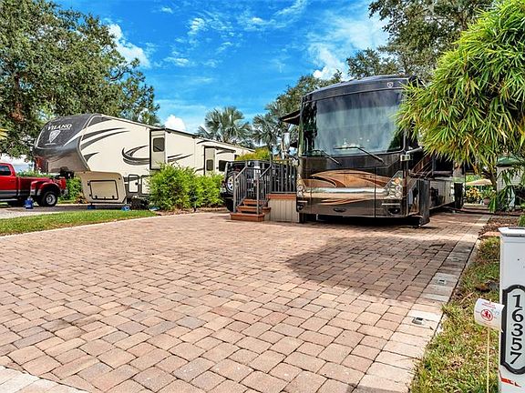 Beautiful lot in Elite Resorts at Citrus Valley! Park your RV on the extra wide and extra-long pie shaped paver pad and enjoy your own slice of Florida Living in this sought-after Clermont RV Resort. Lot 2 is a perimeter lot that conveniently backs directly up to the clubhouse and is located in a luxury portion of the resort ("The Oaks") which offers a lot of space and privacy. The 10x12 storage shed has laundry hook-ups and electric, plus the luxury outdoor grilling kitchen, gazebo and mature landscaping create an outdoor-living oasis for you and guests! The lot has full hookups, room for parking, irrigation, landscape lighting, a grass area for pets and ample paver walkways. You have much more room than you'd expect on an RV lot, so there are tons of possibilities! This top quality resort is only 12 miles from Walt Disney World and offers many amenities including 2 resort bathhouses, laundry facilities, Bingo, a Veteran's Group, variety entertainment shows and social events. The lawn is cut regularly by the association and your HIGH SPEED INTERNET, cable, sewer, water and trash pick-up are all included in your quarterly Condo dues of $756. Low maintenance living, leaves you plenty of time to enjoy local attractions. You can call this beautiful property home in the Winter, or year round... Call today to set up your showing!