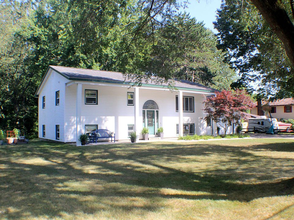 Welcome to 16358 152nd Ave in Spring Lake. This home features 5 bedrooms, 2 full baths and over 2200 sq ft of living space. The main level has hardwood floors running throughout much of the main floor. The three bedrooms each contain built-ins for additional storage space. The main floor bathroom was recently remodeled. The spacious living room offers lots of space for entertaining. Rounding out the main floor is a large eat-in kitchen with new flooring, stainless steel appliances, pantry and backsplash. The walkout lower level has a huge family/Rec room, two additional bedrooms and another updated bathroom. Other amenities include a one car attached garage, two storage sheds, front porch, patio in back and lot a little over ½ acre.