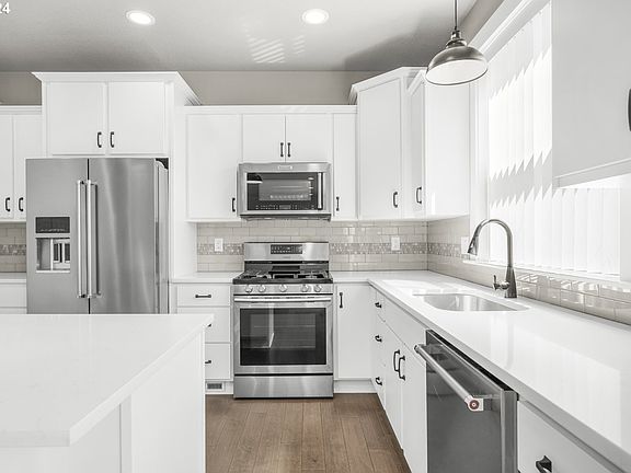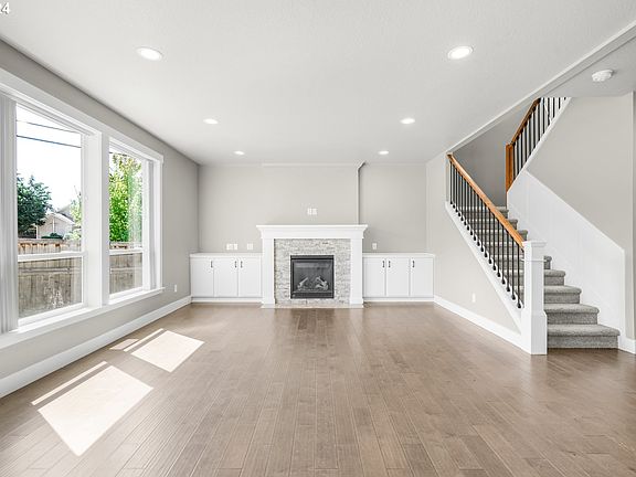 This stunning Craftsman-style home in the serene Barlow Place Subdivision offers a perfect blend of modern amenities and timeless elegance. Situated on a spacious .31-acre cul-de-sac lot, this property has gorgeous wood flooring throughout the main level and an inviting open floor plan. The living room features a cozy gas fireplace with a beautiful stone surround, flanked by custom built-ins, creating a warm and welcoming atmosphere. The dining area opens up to the backyard through sliding doors, perfect for indoor-outdoor living. The gourmet kitchen includes a central island, pantry, stainless steel gas appliances, and quartz countertops. An office with French doors provides a quiet space for work or study and can easily serve as a fourth bedroom. Upstairs, the primary bedroom has vaulted ceilings, a walk-in closet, and a luxurious private bath with a walk-in shower, double sinks, and a soaking tub. A large bonus room with vaulted ceilings provides an ideal space for a playroom or media room. Two additional bedrooms, a full bathroom, and a convenient laundry room complete the upper level. The expansive fenced backyard offers a patio, space for a garden, and a sprinkler system for easy maintenance. RV parking leaves room for all your adventure toys. This home is conveniently located close to restaurants, shopping, the picturesque Camassia Nature Preserve with its scenic walking trails, and the Oregon City Golf Course. Solar panels will be paid off by Seller at closing.