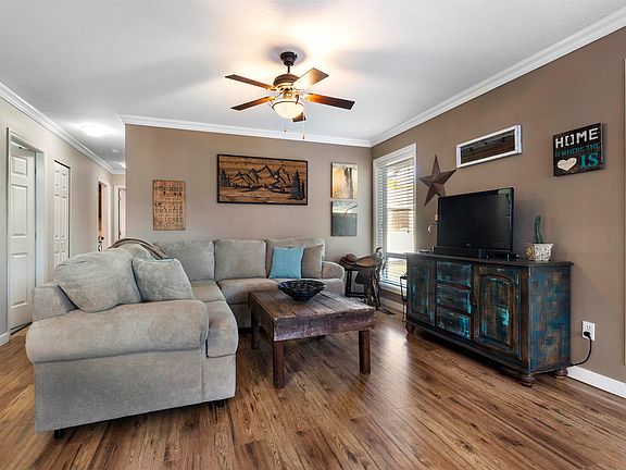 Stunning mountain viewsCozy foyerGorgeous bay windowsCrown moldingUpdated flooringLight fixturesSpacious living