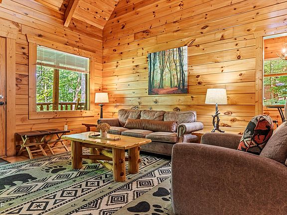 Upstairs, the loft includes a pool table, foosball, arcade system, futon, and an additional bed—perfect for entertaining families and groups. Step outside to a private deck with a hot tub overlooking the trees and seasonal mountain ridges, offering the peaceful mountain experience guests crave. This turnkey cabin is sold fully furnished with updated modern décor and is already designed to perform as a short-term rental. With strong income potential and no design upgrades needed, this is a smart, stylish investment ready to go from day one.
