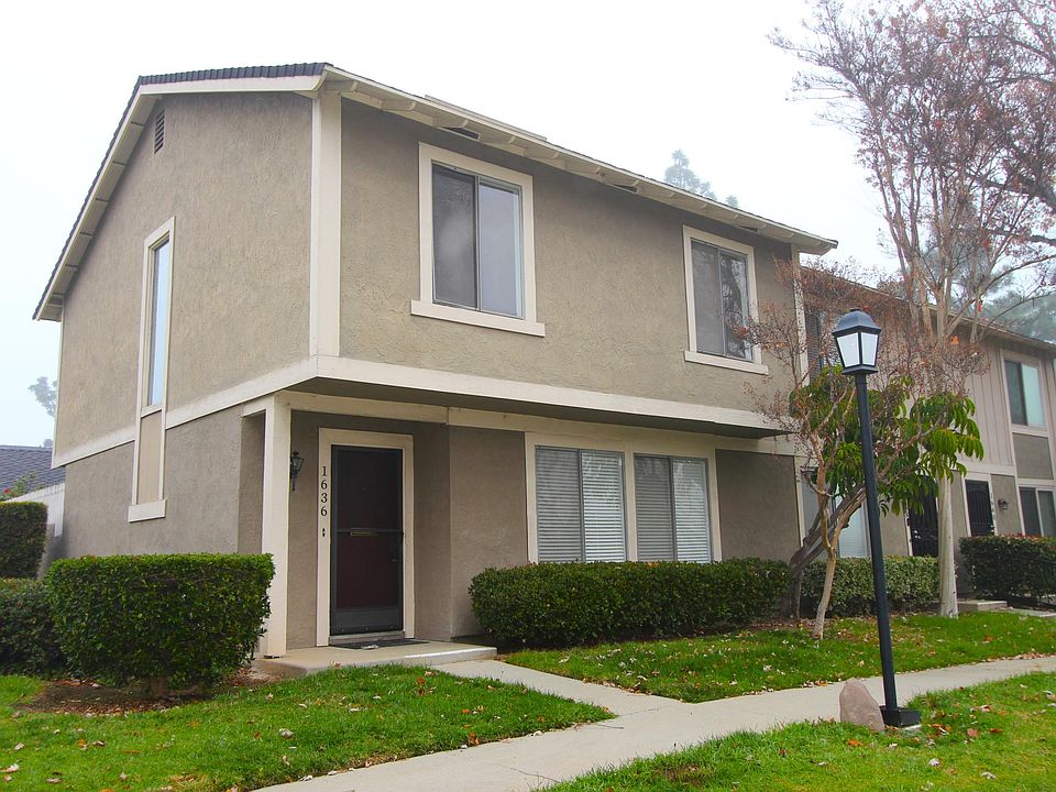Bradford Place Condominium. 3 bedroom + home office, 1 1/2 bathroom. Tile floors in the living room, dining room and kitchen. All carpet upstairs in the bedrooms and office. Kitchen with stone countertops, stove, microwave, dishwasher and available refrigerator. Central air conditioning. Large private patio. 2 car garage with full laundry hook ups. Two story, end unit. The complex has 2 swimming pools and parklike grounds. Located east of Wheeler, north of Baseline, across the street from the Vons Shopping Center.