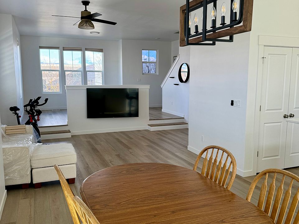 Lots of natural lighting on the 2nd floor- the main living space and throughout kitchen. Living room windows facing bogus basin. In the winter you can see ski resorts lights.