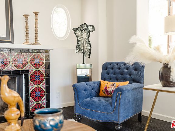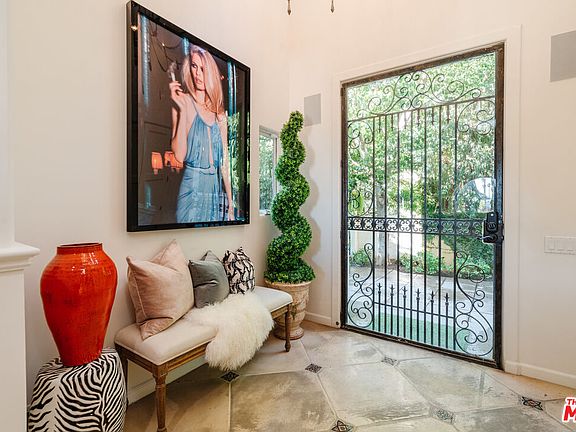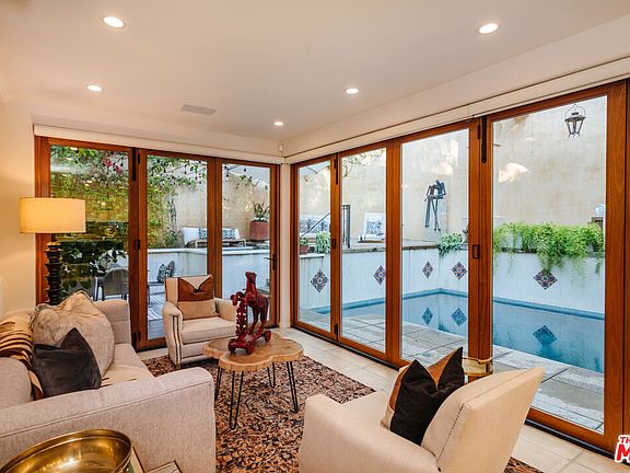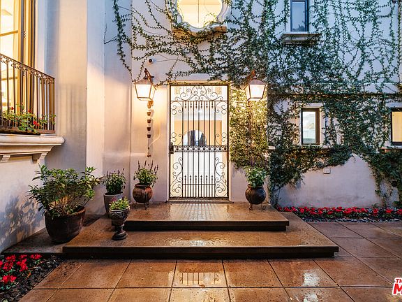 Just beyond privacy walls, lies this magical Mediterranean revival. Enter through the private courtyard and into this ultra-stylish home with high-end designer finishes throughout. Expansive split level open plan, with distressed hardwood flooring mixed with imported tile. Retracting walls of glass and refurbished wood eliminate any barrier between indoor and outdoor living, leading to a multi-level deck with salt-water pool, al fresco dining, multiple sitting areas with fire pit and dramatic exterior fireplace, and a newly built BBQ area. Gourmet kitchen featuring Stainless Steel appliances, stone counters, and breakfast bar connects with dining room and opens to living room with Spanish tiled fireplace and additional lounging area. The upper two levels house three en-suite bedrooms, including the large primary retreat with fireplace and sizable walk-in closet. The main level also features a 4th bedroom which has been converted into a state-of-the-art recording studio, as well as a professional vocal booth inside the attached two-car garage, laundry room, and hallway bath. Surround sound, security cameras, alarm, and prewired intercom throughout. This romantic and opulent villa - offering a sophisticated and authentic aesthetic along with a private, quiet, and zen-like living experience - is conveniently situated just above the Sunset Strip.