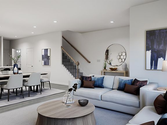 The Sutton features a two car garage. The open floor plan on the first floor is a welcome environment for all your entertaining needs. As you continue upstairs to the second floor there is a flexible loft space. Two secondary bedrooms towards the front of the home. These two rooms share a hall bath with double vanity. The owners suite encompasses the rear of the home and includes a large walk in closet & trey ceiling. The primary bath includes a double vanity and tile shower with built in seating. The Sutton provides the space of a single family home with all the convenience of town home living.
