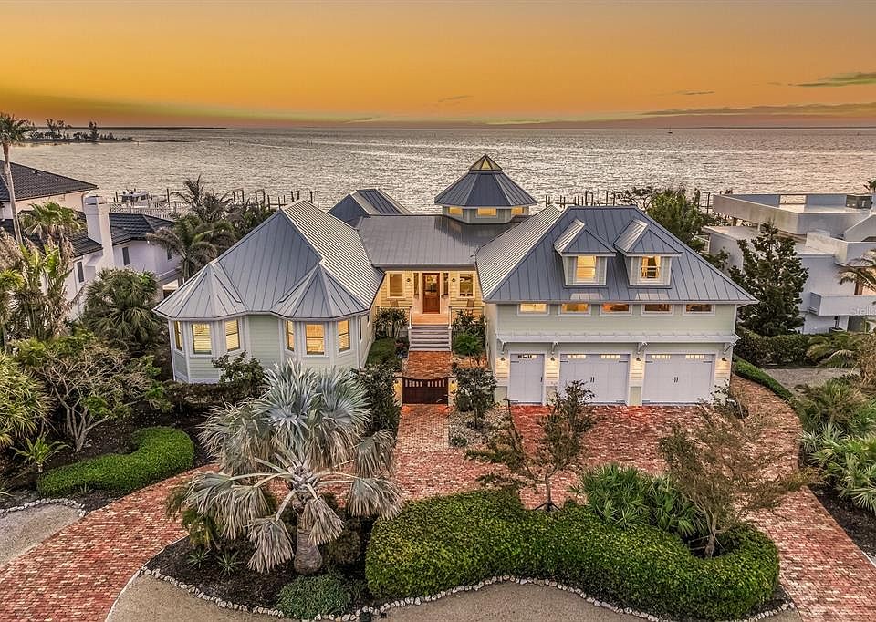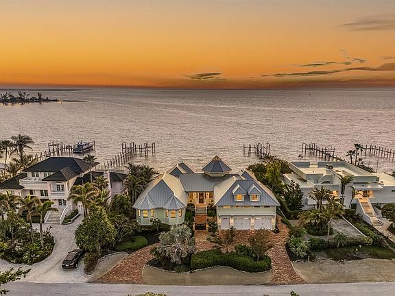 Located within the gated community of Boca Grande Isles, this exquisite four-bedroom, five-and-a-half-bathroom waterfront residence underwent a clever two-year transformation involving redesign and reconstruction. Designed for ease of maintenance, the property is equipped with impact windows, a standing-seam metal roof, cement board siding, and Ipe decking, ensuring aesthetic appeal and longevity. The home boasts panoramic water views stretching across the horizon and exuding a timeless feel with vaulted ceilings and custom finishes throughout. The heart of the home presents an open layout that seamlessly blends the living, dining, and kitchen areas. The gourmet kitchen features a 6-burner gas range, custom cabinetry, and a gracious center island. With the harbor as the backdrop, the space is perfect for entertaining. The great room over the garage is complete with a wet bar, beverage cooler, and a private bath. It offers versatility as an office, an in-home gym, a game room, or a private suite. On the main level of the home, the primary bedroom offers a front-row seat to stunning sunrises, the perfect beginning to each new day. It’s complemented by a spectacular ensuite bathroom featuring a soaking tub and a large walk-in shower. Each of the additional bedrooms are located on the opposite side of the home, ensuring optimal privacy and comfort for family and friends. Thoughtfully designed, these ensuite retreats ensure everyone will feel pampered in their own private oasis. The outdoor living space rivals the interior's allure. The serene waterfront setting creates a haven of tranquility that lends itself perfectly to relaxing by the infinity pool or curling up with your favorite book on the screened porch. This impeccably maintained home is part of the charming community of Boca Grande on Gasparilla Island, where quaint charm prevails amidst the absence of high rises and traffic lights. While cars are allowed, residents here favor modes of transportation such as bikes, golf carts, and leisurely strolls along dedicated pathways. Outdoor enthusiasts will embrace the sunshine, pristine beaches, and abundant fishing options. With quick golf cart access to the village and the beach, this home presents an unparalleled opportunity to capture the true essence of the Boca Grande lifestyle. Paradise found.