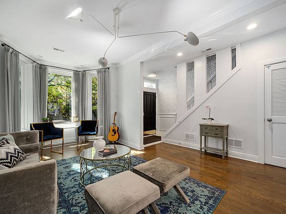 This exquisitely restored Victorian residence is a true architectural gem, seamlessly blending timeless historic charm with contemporary luxury. The expansive main floor features high ceilings, exposed brick, and an open-layout with both the living and dining room flowing into a chef's kitchen that has been thoughtfully renovated with brand-new custom cabinetry and premium appliances. Step out of the kitchen into an outdoor oasis: the private backyard is an entertainer's dream, featuring a beautifully landscaped garden, two decks, and a tranquil patio. In addition to the expansive outdoor space, the backyard features a two-car garage and a storage shed. Upstairs, the second level presents a sun-soaked library with a dramatic bay window and a serene primary suite with a luxurious walk-in closet and spa-inspired ensuite bath. The third floor features two generously-sized bedrooms, a full bath with an oversized soaking tub for ultimate relaxation, and conveniently located side-by-side laundry. The lower level features a spacious family room, a private bedroom with an adjacent full bath, and a private entrance leading to a serene back patio and the lush garden - ideal for an in-law suite, guest retreat, or peaceful home office. Perfectly positioned on a quiet, tree-lined street just steps away from Wicker Park's celebrated dining, boutiques, and vibrant arts scene, and a short walk to the Division Blue Line and the 606. This move-in ready home is a rare find, combining historic architecture, modern luxury, and serene indoor-outdoor living, all within the heart of Wicker Park.