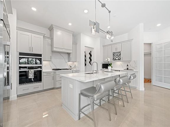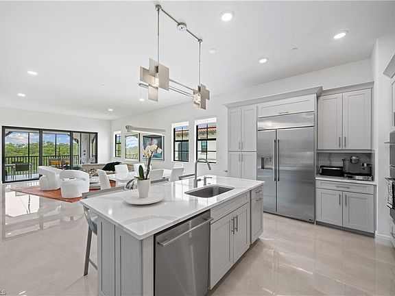 Welcome to an unparalleled living experience in this stunning top-floor penthouse nestled within the highly acclaimed community of Talis Park. Accessed via your private lobby elevator, this meticulously designed residence boasts 11-foot ceilings with a light and bright Southern exposure and an open concept floor plan. No detail has been overlooked in the upgrades and customizations of this luxurious sky-home, where every feature radiates elegance. Highlights include custom closets, upgraded tile flooring, designer lighting fixtures, additional LED ceiling lights, bespoke plumbing fixtures, electric window treatments, G.E. Monogram appliances, and natural gas amenities. For peace of mind, the property includes electronic hurricane-rated patio screens and impact-resistant doors and windows, along with an oversized two-car garage plus plenty of space for storage and an additional golf cart. Talis Park itself is a prestigious 24-hour gated community, centrally located amidst Naples' finest dining, shopping, and entertainment venues. Residents enjoy access to an award-winning golf course designed by Pete Dye and Greg Norman, along with world class tennis, pickleball, bocce, scenic biking trails, and vibrant social events. Whether savoring gourmet meals, perfecting your swing, or relaxing at happy hour with neighbors, this neighborhood offers an unparalleled lifestyle here in Naples.
