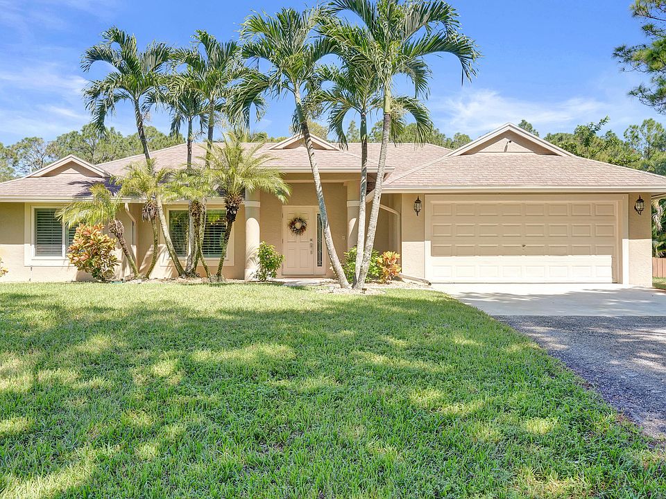 Welcome to your private paradise in the heart of Loxahatchee! This beautifully remodeled home sits on nearly 1.3 acres, offering the perfect blend of luxury, comfort, and outdoor living. The resort-style backyard is ideal for entertaining--featuring a sparkling pool, spacious tiki hut, screened patio, built-in fire pit, and horseshoe area for family fun. Inside, a stunning newly renovated kitchen with modern finishes opens to bright living spaces with high vaulted ceilings. Freshly updated bedrooms and baths include new flooring and stylish details throughout. The property is secured by an electric front gate, plus a second double-gated entry perfect for RVs, boats, or trailers. Experience the best of the Loxahatchee lifestyle in this truly exceptional retreat. Enjoy peace of mind with a complete hardwired security camera system with floodlights, smart app integration, and an interior monitor, along with a convenient generator hookup for easy power connection when needed. Surrounded by lush landscaping and mature fruit trees (mango, citrus, banana, and fig), this home offers the perfect blend of beauty, comfort, and functionality