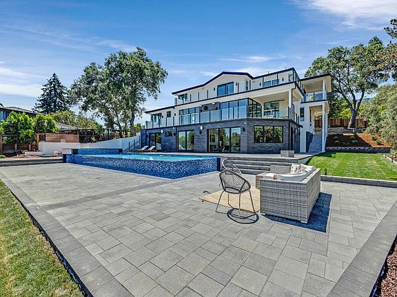 This modern Monte Sereno estate, spanning 6112 sqft on 1+ acres, showcases luxurious craftsmanship and new construction. Sustainable stone and wood details adorn the interior, blending well with the expansive grounds. Upscale amenities like an infinity pool, lanai, 3-car garage, and resort-style landscaping elevate the property. Nestled in the foothills, it offers captivating views, easy access to highways, downtown, and top-tier schools. The 3-level interior features a great room with glass walls, a private office, a family room with a premium entertainment setup, a dual island gourmet kitchen with Miele Pro range, a wine cellar, and 6 bedrooms with 5.5 baths, including an exceptional primary suite for an extraordinary lifestyle.