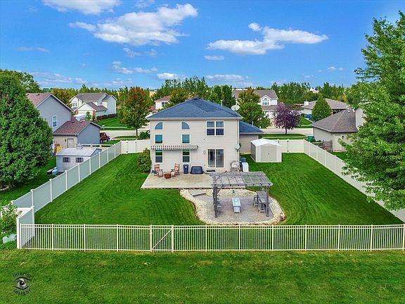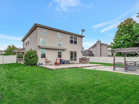 Stunning 4 bedroom, 3 bathroom home located on the waterfront in desirable Leighlinbridge of Manhattan! The foyer opens up to the dining room and family room with vaulted ceilings, beautiful tile flooring and natural light galore. The kitchen features new black SS appliances, breakfast bar, separate eating area, pantry and sliding glass door which provides views of the beautiful lake. The main floor also has an updated bathroom, laundry room and access to the heated 3 car garage. Upstairs you will find the master bedroom suite, with TWO massive walk-in closets and newly remodeled bathroom with dual sinks. The second floor also features a loft with a built in desk, full bathroom and two additional generously-sized bedrooms. The full finished basement with new vinyl plank flooring, family room, large entertainment area, 4th bedroom and storage galore. The backyard oasis has a built in grill, paver patio, private pergola with views of the gorgeous lake which is stocked with fish. This home also includes a whole-house generator, brand new fence and storage shed. Located in the Lincoln Way West district. You don't want to miss this one!