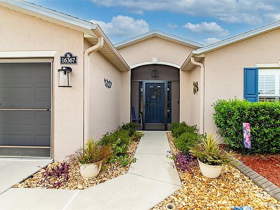 Welcome to this “Marathon” model in the sought-after golf community of SummerGlen. Professionally freehand painted and styled with the eye of a top interior designer. This 3-bedroom, 2-bath home has been thoughtfully enhanced inside and out, showcasing a curated look that feels polished, timeless, and completely move-in ready. Every detail has been elevated, creating a home where no updates are needed, just bring your furniture and start enjoying the lifestyle. Step inside to a spacious foyer that opens into the dining and family room, filled with natural light from a solar tube. The kitchen overlooks the living area and features granite counters, a complimentary backsplash, new stainless-steel appliances, updated lighting, and a breakfast nook. A gas range hookup remains available for those who prefer it. Tile flooring runs throughout the main living areas, while the bedrooms feature warm wood laminate. Plantation shutters on every window add timeless charm. The owner’s suite includes a stylish barn door separating the ensuite bath for privacy. Inside, you’ll find dual vanities with new granite counters, updated fixtures, mirrors, and lighting, along with a walk-in shower. Both bathrooms have been refreshed with modern updates, and every room shines with new ceiling fans, lighting, and fixtures that bring a fresh, polished look. Enjoy year-round Florida living in the enclosed Florida room with new ceiling fans or step out to the newly re-screened lanai birdcage patio, perfect for entertaining or relaxing outdoors. The exterior has been enhanced with cement landscape edging, a freshly painted entry door, an new enclosed front door screen, and upgraded lighting. The garage provides wall-to-wall cabinetry, new door springs, and a functioning irrigation system, while the laundry room includes additional storage cabinets. Washer and dryer are also included. Living in SummerGlen means more than just a home, it’s a lifestyle. The community offers an 18-hole golf course, on-site restaurant, resort-style pool and hot tub, tennis and pickleball courts, softball field, dog park, RV storage, and a vibrant clubhouse with fitness center and social activities. The low monthly HOA of $375 covers guard-gated security, Spectrum Bronze Tier 1 TV cable, 100 Mbps high-speed internet, lawn care (mowing, edging, and blowing), trash and recycling pickup, and RV and boat storage for a one-time fee. As an added bonus, residents receive a $30 monthly credit at the on-site restaurant.