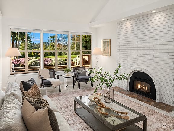 Welcome to the 1st Hole on the Tam O’Shanter Golf Course in Bellevue~ Spacious rambler offers serene views of the beautifully manicured green. This single story home features vaulted ceilings, gas fireplace & expansive vistas. Fresh paint, new carpet & hdwds enhance the interior & ensures comfortable living. Kitchen boasts SS appliances, Wolf gas cooktop & granite counters + dining & bonus rm w/covered patio for entertaining. French doors lead to private deck off primary w/ensuite. 2 addit'l large bdrms & full bath. Mature landscaping, partial fence & rare spacious 3-car garage for storage & golf cart! Award-winning Bennett Elem & Interlake High. Inc: Golf/tennis/pickle ball/swim/restaurant. Near 520/I-90, Msft, Amazon, Google & DT Bellevue