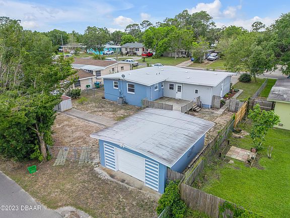 Welcome to 1637 Cordova, located in the charming city of Holly Hill, FL. This stunning property boasts a 2022 roof and sits on a double lot, providing ample outdoor space for you to enjoy. The rear entry into a detached two-car garage adds to the convenience and appeal of this home. This beautiful home features a warm and inviting interior with rustic wood floors and ample natural light. With three comfortable bedrooms and two well-appointed bathrooms, there is plenty of space for a variety of uses. The spacious kitchen provides the perfect setting for entertaining and meal preparation, with abundant countertop and cabinet space. Additionally, the private mother-in-law suite with its own entry, kitchen, and bathroom offers a versatile living space that can be used for guests or family. Future owners will have the ability to escape to their own personal oasis with this stunning Florida backyard. The serene and peaceful atmosphere is perfect for relaxing after a long day. Enjoy the beauty of nature from the comfort of a beautiful wood deck, providing ample space for outdoor entertaining and relaxation. The cleared space allows for endless possibilities and is the ideal spot for hosting barbecues, outdoor activities, or simply enjoying the tranquility of the outdoors. Detached garage has washer and dryer hookups as well as "shore power" for an RV or camper. Home is also equipped with easy-to-install metal hurricane shutters. Surrounded by natural beauty and attractions, this property is located near easy-access boat and kayak ramps at Sunrise Park and Riviera Park. You'll also have your choice of either drive-on or traffic-free pristine beaches, just a short 10 minute ride away. Additionally, Pictona, located only a mile away, is home to world-class pickleball with 24 covered courts and a casual on-site restaurant. Don't miss out on the opportunity to make this beautiful property your own and experience the best of Florida living. Schedule your showing today!