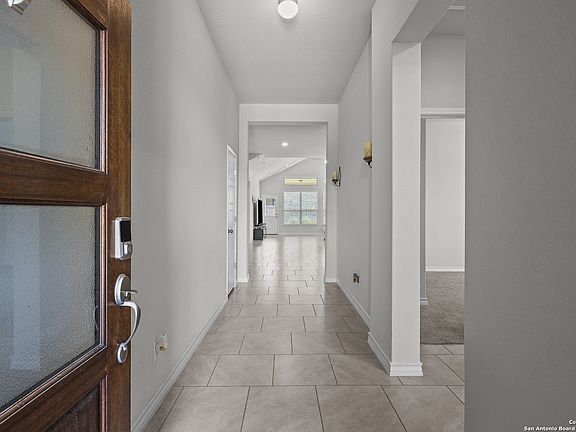 Welcome to 1637 Cullanne in Bulverde, TX, a beautifully designed 3-bedroom, 2.5-bath home offering 1,902 square feet of inviting living space. Two spacious bedrooms greet you at the front of the home, creating a private retreat for family or guests. The heart of the home is the open-concept living room and kitchen, filled with natural light from expansive windows. The kitchen features granite countertops, a central island, and stainless steel appliances, perfect for everyday meals and entertaining. The large primary suite provides comfort and style, complete with a luxurious ensuite that includes a soaking tub, separate shower, and dual vanities. Step outside to enjoy a covered back porch overlooking the backyard, an ideal space for outdoor dining or relaxing. Located in a welcoming community, residents enjoy access to a pool, clubhouse, jogging trails, and a sports court. Nestled in Bulverde, this home combines modern convenience with scenic charm while keeping you close to San Antonio shopping, dining, and top-rated Comal ISD schools.