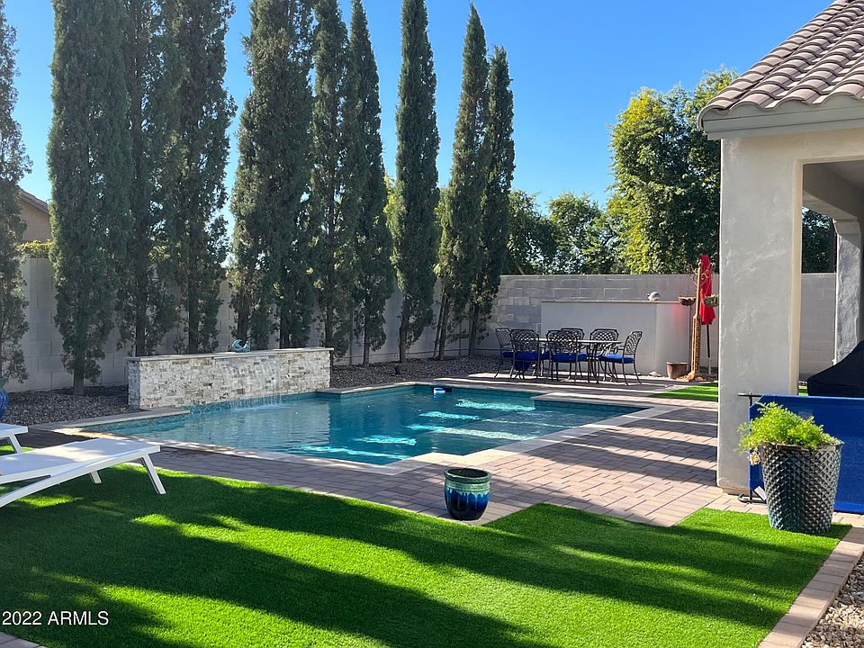 Wow..Price Drop 2/3/22 and best priced home in 85298,85297,85286,85249,& 85248 with sq.ft.(1900-2200) and amenities! Beautiful single level home located in a nice gated community in wonderful Gilbert. This home has recently been updated inside and out, from int. /ext. paint, to backyard makeover w/pool, to new carpet, new backsplash in Kitchen and also a renovated/updated main shower. Look at the documents tab for more info. It has a split floor plan and features a huge open Kitchen/Great room area. The kitchen comes with an enormous island and tons of cabinet space. Tile in all the right places, walk in closets in bedrooms, double sinks in both bathrooms, 3 car garage and all on a nice size corner lot. You will want to see this one with all of its inviting charm, you will be glad you did!