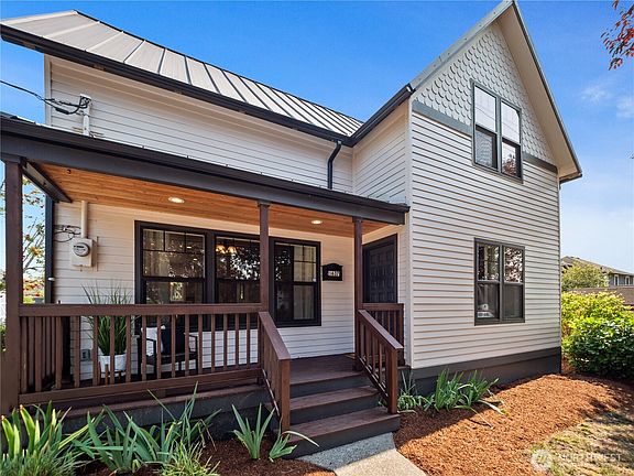 ADU/Duplex POTENTIAL at this historic & charming 4 bed, 2.25 bath, 1,450SF craftsman home on an oversized corner lot in the heart of Enumclaw! Built in 1888 (Verified @ the Plateau Historical Museum) & completely remodeled in 2019. Spacious living room w/ vinyl plank floors. Open concept kitchen w/ updated cabinetry, SS appliances, gas range, vinyl plank floors, & dining area. Primary bedroom on main w/ WIC & attached 3/4 primary bath w/ tile floors & custom tile shower. Laundry room & 1/2 bath downstairs. 3 decent sized bedrooms up + full bath w/ tile floors. Fully fenced back yards w/ detached garage, tool/garden shed, & mature pear tree. New carpet 2025. Forced air heat. Great curb appeal & location that is walking distance to downtown!