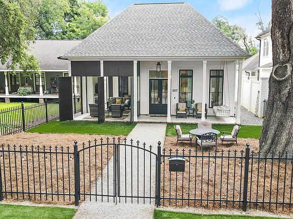 Nestled along the vibrant parade route, just moments from LSU and located across the street from BR City Park, this exquisite 2,151 sqft residence offers a blend of luxury and practicality. Offering 3 bedrooms, 2.5 bathrooms, plus a dedicated office space, every corner of this home exudes thoughtful craftsmanship and modern elegance. Details include pristine white oak floors lead you through a meticulously designed interior featuring marble counters throughout, powder coated aluminum doors and shutters and a whole house generator ensuring peace of mind in any weather. The heart of the home is the chef-inspired kitchen, adorned with GE Cafe series appliances, a coffered ceiling with shiplap detailing, and a sprawling marble island perfect for culinary creations. Abundant storage ensures a clutter-free environment, ideal for both entertaining and everyday living. The living room has a modern linear fireplace and breathtaking views of the fully fenced and turfed yard, seamlessly blending indoor comfort with outdoor serenity. Anderson folding doors open to an expansive porch equipped with a gas fireplace, remote screens, and operable shutters, inviting year-round enjoyment of the outdoors. The master suite features a spacious layout that opens into a spa-like bathroom complete with a soaking tub, custom shower, double vanities, and a dedicated makeup area. A vast walk-in closet provides ample space for wardrobe and storage needs. Additional highlights include a fully trimmed out 2-car garage with a tile ledge, enhancing its functionality and aesthetic appeal. A Ring security system ensures peace of mind, while the home’s custom details throughout underscore its unique charm. This is more than just a house; it’s a testament to meticulous design and luxurious living, offering unparalleled comfort and convenience in one of Baton Rouge’s most desirable locations
