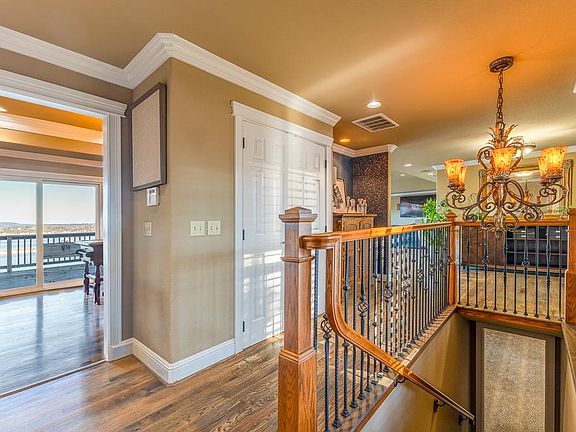This Beaver Lake property in Crows Nest Subdivision offers a breathtaking view of the lake overlooking the Hwy 12 bridge, featuring a high-end home theater, indoor/outdoor music zones, an outdoor kitchen with a commercial pizza oven, three decks, a gourmet kitchen with KitchenAid appliances, an advanced security system, 5 external cameras, 2 fireplaces, a bar, and a game room with a band stage. The primary suite includes a luxurious spa with a jetted tub and a tiled shower. It has floor-to-ceiling windows for panoramic views and natural light, plantation shutters, two private bedrooms downstairs for guests, and a basement ready for customization. The roof is DaVinci composite. The home requires some TLC and is priced accordingly.