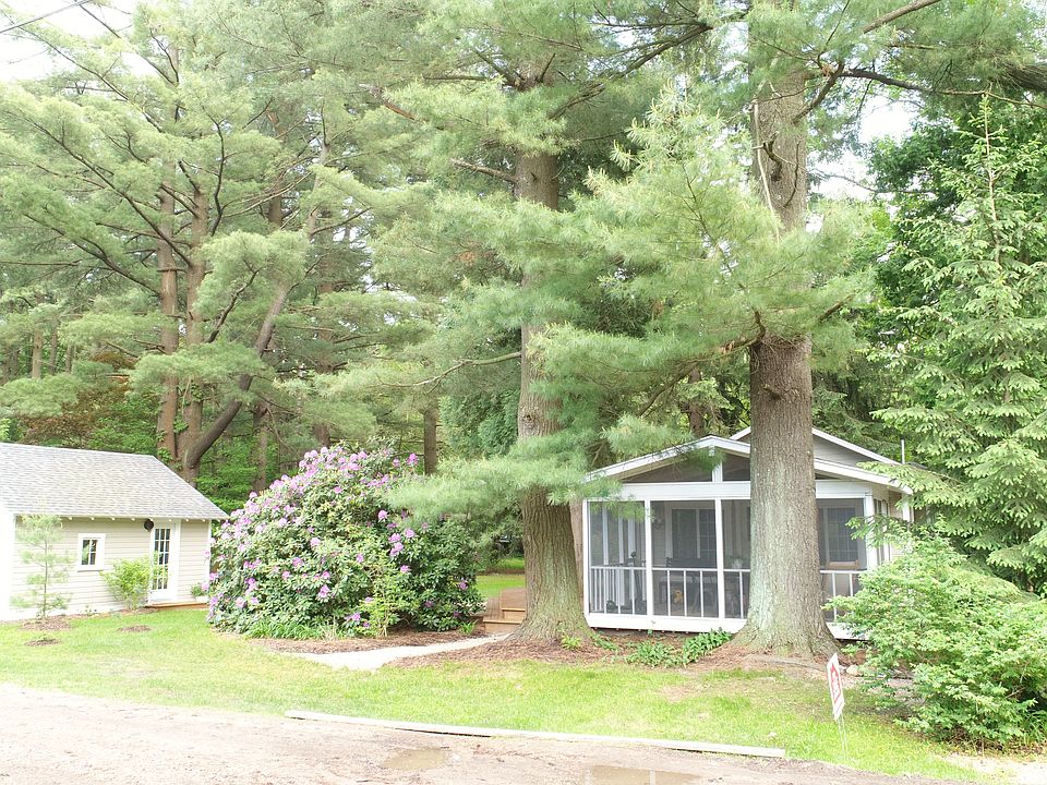 The cottage was originally built in 1926 and recently fully renovated; 3 bedrooms/2 full baths (2 bedrooms and full bath in the main house and another bedroom and full bath in guest house, guest house also has additional lofted area with 2 twin mattresses); total square footage is approx. 1270 sq ft.; large wooded lot, approx. 0.35 acres, with lawn and landscaping and room for a garage and/or pool (either in side-yard or courtyard area between house and guest house); screened-in porch, large deck, and large stone patio with stone walkway; kitchen has stainless steel appliances and butcher block countertops with all natural organic finish; wood floors throughout, high ceilings in living areas/kitchen, lots of windows and natural light; ready for year round living with central A/C and forced air gas furnace.
