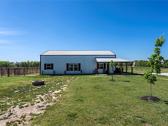 30x50 Barndo w/12ft side walls & 12x50 lean-to sitting on 2.5 acres m/l, just off the paved road! Open floor plan includes 4 bedrooms, 1 bath, and an adorable welcoming entry with a drop zone. LVP & tile flooring. Kitchen has butcher block counters & is large enough for everything you'll need. Built in 2022 with metal trusses, 2x6 sidewalls, & foam insulation keep electric bills at an average of $130mo! Fiber optic available, all electric, rural water. Tons of attic storage!! Aerobic septic system located to the west of the house. Cattle panels, feeding troughs, & kitchen island do not convey.