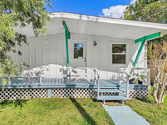 A hidden gem in Bokeelia! This charming old Florida cottage sits at the end of a lush private road and has a picket fence, front porch and a beautiful bottlebrush tree in the garden. If you enjoy nature or love to fish, this will be your happy place! Relax on the deck and watch the dolphins and manatees swim by while bald eagles and osprey fly overhead. Drop a line off the dock and catch a snapper for dinner!