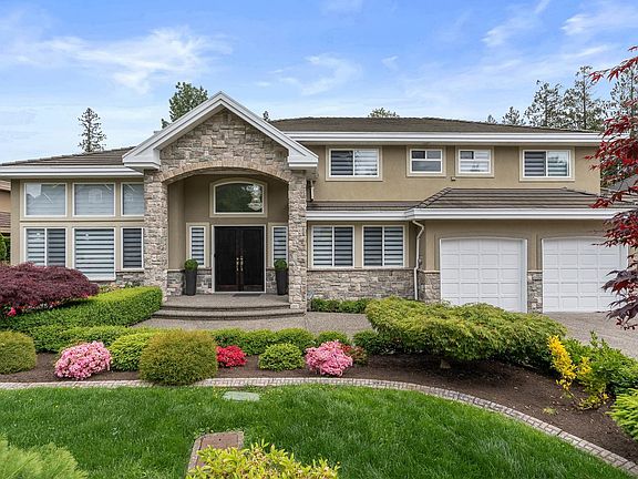 Extensively renovated custom built 5,574 sqft home sitting on almost 14000sqft lot in Fraser Ridge. With BEAUTIFUL RIVER and MOUNTAIN VIEW this home has too many new features to mention. New Kitchen, New floors, A/C, New appliances , New paint, New glass covered patio and picnic patios, New sprinklers, New bathrooms, Refinished doors and much more. Grand foyer w/ high ceiling, den on main, traditional living/dining,Gourmet modern kitchen w/ WOK kitchen, huge family rm, eating area w/ patio door opens to covered balcony. Upstairs primary bdrm w/ 6 pieces ensuites plus 3 more bdrms /2 more baths. Daylights w/o bsmt is finished w/3 bsrms and a bath, living rm, dining rm w/ a seperate entrance. Radient heating on 3 levels, designor reno that you will fall in love!