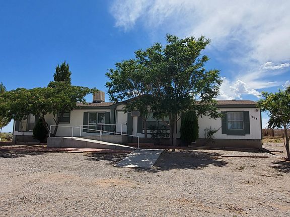 This home sits on one acre. It has two living areas and a great open floorplan with vaulted ceilings. The kitchen has a large breakfast bar that opens to the den with a wood-burning fireplace. Off the kitchen and den is a potential office space or breakfast nook that looks to the east for enjoying those wonderful New Mexico sunrises. The master bedroom is separate from the other three bedrooms. There is a formal dining area for those larger gatherings.