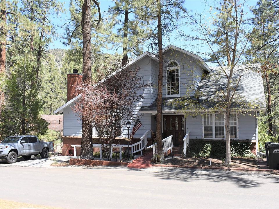 Check out this one of a kind beauty neatly nestled in the pines with everything a homeowner could want!! Featuring 3 bedrooms, 3 bathrooms, a mother-in-laws apartment with kitchenette and single car garage! Upon walking into the main house, you enter into a large family room with vaulted ceilings. This beautiful home includes 2 masters, one on each level. The master suite downstairs includes a large walk-in closet and master bath with shower/tub combo with enough room to accommodate a large spa tub addition or new shower kit. The main kitchen features a nifty pantry, plenty of cabinets for storage, dishwasher and a breakfast nook perfect for the daily routine. The kitchen opens to the living room and features a wood burning stove with brick hearth and also sports three wood burning stoves throughout the main house. The master suite upstairs features its own dedicated laundry and bathroom. Downstairs the main laundry room features ample cabinets space with the washer and dryer. Just off the laundry room you have your own private office and there is an additional bonus room that could be considered a 4th bedroom with the addition of a closet. This wonderful property also features dual-pane windows throughout. The A/C unit is dedicated for the upstairs living area to cool you off in our warmer months. This wonderful home has so much to offer and is a must see in picturesque Wrightwood.