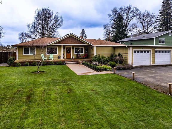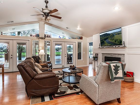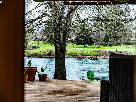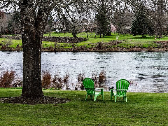 Welcome to this charming home nestled along the North Umpqua River in North Roseburg. Situated on .83 acres of picturesque land, this property offers a slice of paradise with easy access to the river and beautifully manicured grounds that include a charming fenced garden area. As you approach the home, a spacious and inviting front porch sets the stage for what lies beyond. Step inside to greeted by the grandeur of the great room where vaulted ceilings soar high above and floor-to-ceiling windows frame views of the North Umpqua River. On chilly evenings, cozy by the gas fireplace while enjoying the ambiance created by opening all the French doors to the covered deck.This home boasts one-level living, with laminate flooring throughout the living areas and plush carpeting recently installed in the bedrooms. The roomy kitchen is a chef's delight, featuring a cooking island with an inviting eating bar, perfect for hosting gatherings Stainless steel appliances, a gas range, and a built-in oven add a touch of elegance to the space. Additional highlights include a pantry area for added storage and a spacious laundry room that doubles as a convenient coffee bar.The seamless flow between indoor and outdoor spaces ensures that you can enjoy the captivating views of the river from both the great room and the covered deck. Despite its original build year, this home underwent a partial rebuild around 2013, blending modern amenities with timeless charm. Don't miss the opportunity to own this exceptional riverside retreat that promises not just a home, but a lifestyle of serenity and natural beauty.