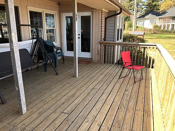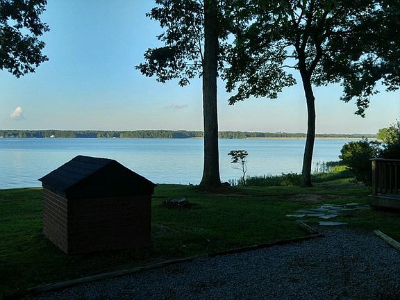 How about a panoramic view on a flat lot with over 500 + feet of shoreline and limitless views from three directions! The brick ranch home is all on one level with 3 bedrooms and 3 baths. The kitchen is large that has an adjoining dining room which accesses to the covered porch and deck. The living room is spacious with a fireplace. Down the hall you will find 3 bedrooms and 2 of the 3 bath and lots of closet space. On the other end of the home there is a third bath and extra large room that could be an extra great room or recreation room. It has an exit door to go outside or use when unloading groceries. Fenced area for dogs and storage buildings. Tremendous views. Boathouse too!
