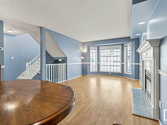 END UNIT AT THE END OF THE COMPLEX! Approx 1450 sq/ft 2 storey with 3 bedrooms & 2.5 bathrooms. Main level with hardwood floors offers a cozy living/dining room area with gas fireplace. White kitchen with some updated appliances leads to the back deck (perfect for BBQ and relaxing outside!). Upper level has 3 bedrooms including the primary with double closets & 4-piece ensuite. Basement is fully finished with a rec-room, laundry, storage, & access to the ATTACHED GARAGE (keep your vehicle warm & dry, plus an additional vehicle can be parked on the driveway). NEWER FURNACE & HOT WATER TANK, & FRESHLY PAINTED! Ideal location close to schools (quick walk to Jackson Heights K-6), greenspace, Millwoods Golf Course, public transit, & all amenities. This complex is VERY PET FRIENDLY! Come check out this beautiful property!