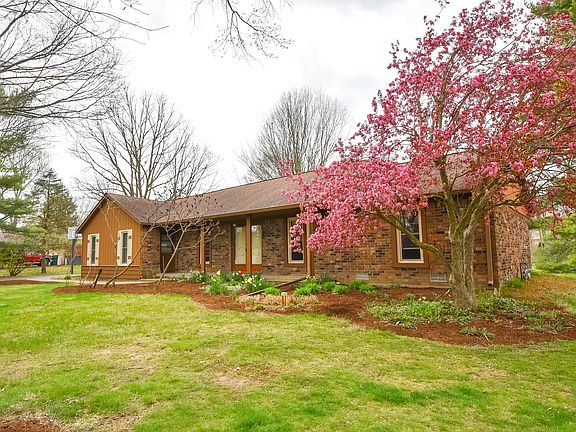 This all-brick 4 bed/2 bath ranch nestled in the serene Wall Street Heights neighborhood welcomes you with its well-maintained charm. Situated in a quiet locale with no HOA dues, this home offers a peaceful retreat for you and your family. Boasting over half an acre, the spacious backyard provides ample room for both entertaining and recreation, complemented by the shade of mature trees. The kitchen is a delight for the culinary enthusiast, featuring abundant cabinet space and an open layout that seamlessly flows into the eat-in area and living room, creating an inviting atmosphere. Natural light floods the interior, accentuated by the installation of new windows in 2022. Adjacent to the kitchen, a year-round room adds 176 sq ft of living space, offering panoramic views for enjoying your morning coffee or relaxing throughout the day. The sizable master bedroom, complete with an ensuite bathroom, boasts three closets for ample storage. Each bedroom is generously appointed with closet space and ceiling fans, ensuring comfort year-round. Outside, the landscape is adorned with mature trees and vibrant spring and summer flowers, enhancing the idyllic countryside setting. Key updates include a newer furnace and AC installed in 2019, as well as new gutters in the same year, ensuring modern comfort and functionality. A whole-house fan provides additional ventilation, while the attic offers plenty of storage space for your belongings. Convenient amenities such as a washer, dryer, and refrigerator in the garage are included, offering added convenience. Home is located just 1/2 mile from Avon Middle School and elementary. With its blend of comfort, functionality, and natural beauty, this home presents an opportunity for peaceful living in a picturesque setting.