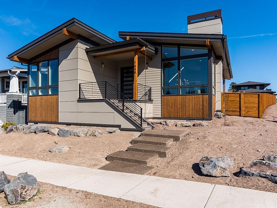 Wonderful mid century style home on a large corner lot in Northwest Crossing. Enjoy mountain views from your living room in this light, bright single level home. This three bedroom, two bath home lives large with the master in the front and two guest rooms in the back of the home. The open great room is stunning with exposed beams, fun lighting and sliding barn doors for function and design. The larger corner lot allows for an extra parking space in the back, and plenty of outdoor space for entertaining. The fenced yard also provides privacy. Easy walk to Discovery Park, NW Crossing drive and the schools from this ideal location.