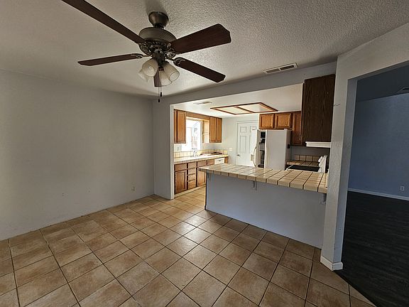 Large home with vaulted ceilings in living room, gas fireplace and forced air heat. Cute yard to have a BBQ or plant your garden!