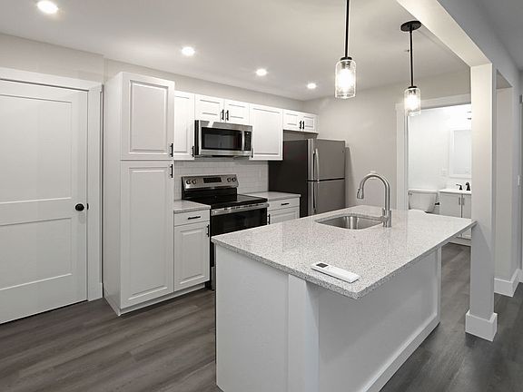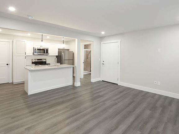This spacious apartment features a modern open-concept layout with a large living room flowing seamlessly into the kitchen. The kitchen is equipped with an island, granite countertops, and brand-new appliances perfect for both everyday living and entertaining. High ceilings, recessed lighting, and oversized windows fill the space with natural light.