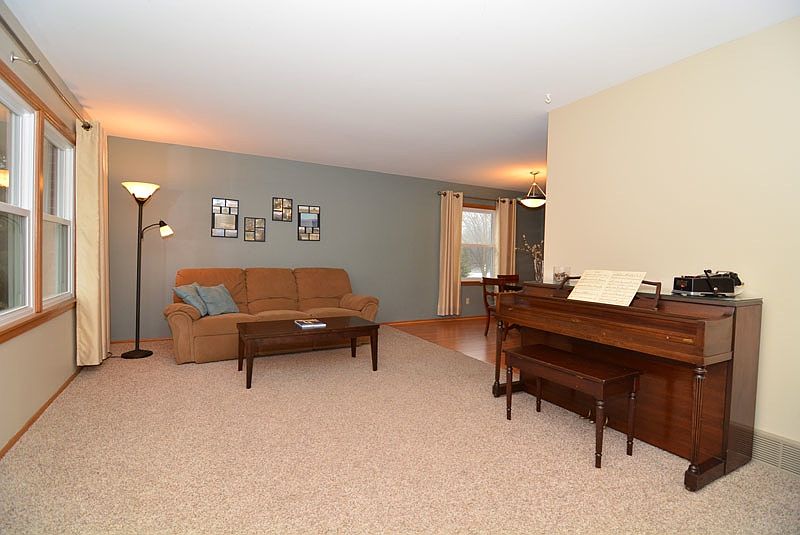 New Berlin ranch on 2 acres and surrounded by 35+ acres of nature with walking trails. Large sunny living room and dining room with built-in china cabinet. Open kitchen offers ample cabinets and countertops with breakfast bar. Family room warmed by the natural fireplace. Newer sliding glass door overlooks patio and park-like yard with 30x75 organic garden & apple trees/berry bushes. Windows (2013), water heater (2013), furnace (2010), well pump (2008). One year Warranty included. Close to I-43,I-94 and shopping