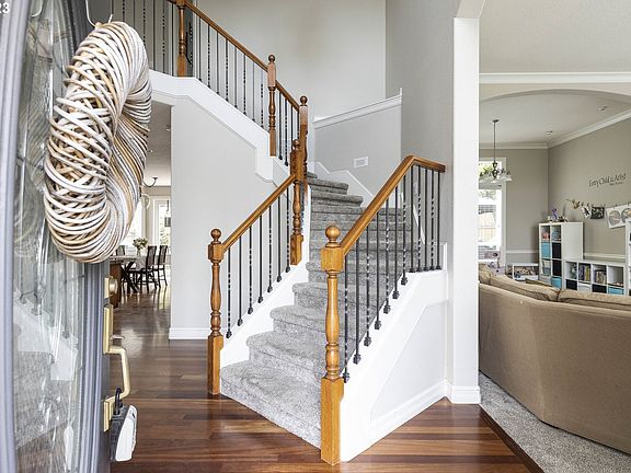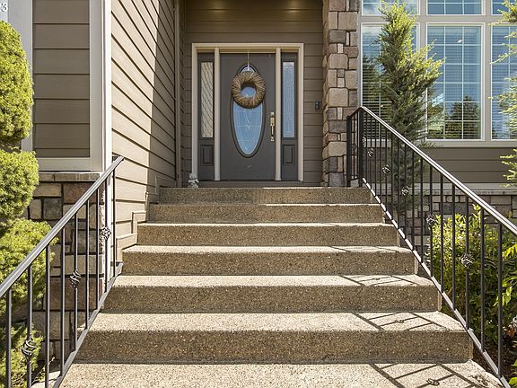 Welcome home to the entertainer's paradise situated in a well-established neighborhood with highly desired schools. This property boasts a beautiful two story entrance with grand staircase, adjacent office, high ceilings, recently installed new carpet and Brazilian Cherry floors. The kitchen offers stainless steel and gas appliances, granite countertops and eating bar island with ample cupboard space. 4 generously sized bedrooms with the primary suite featuring French doors, travertine stone, walk in closet, double sinks and jetting soaking tub. Backyard features Trex decking, garden space, pergola with drapery, and 2021 Swimlife "play stream 12". Location of this home is within minutes of Trillium Park and Orchard Summit Lake. A short drive and you'll be at New Seasons Market and Happy Valley Town Center.