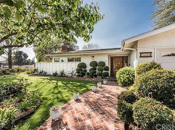 Stunning Knollwood Country Club adjacent with gorgeous curb appeal on approximately 1/4 acre on whisper quiet circle street in well established Granada Hills neighborhood. This exceptional home has Texcote exterior* Gleaming hardwood floors throughout* Newer double pane windows, plantation shutters, and recessed lighting* Brand new all-white kitchen features Carrera quartz countertops, ceramic tile floors, stainless steel range, microwave, dual undermount sinks, soft closing drawers and cabinets, mobile center island (easily moved to add a kitchen table), long breakfast counter, and even a garden window!* Spacious formal living/dining room with fireplace and tons of natural light* Family room is open to the kitchen and has a slider to the enclosed patio for an additional entertaining area* Master suite has a slider to the backyard, an updated private bath including a large shower with glass doors, dual sinks, and ceramic tile floors* Two additional bedrooms and another full bathroom in the hallway* In the private backyard you will find a large in ground spa with pool type filtration equipment, a firepit, back & side patio areas, a waterfall, fruit trees (fig, orange, lemon, and grapefruit), a grassy play area, a rose garden, a shed which can also function as a workshop with it's own patio area* 2 car garage with direct access* Solar power to save you on your electric bills* Convenient location near excellent schools, freeways, and shopping!!!